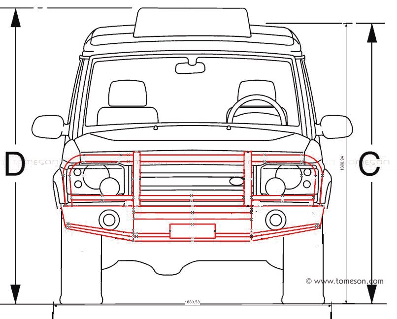 LAND ROVER Discovery II – zaprojektowany od podstaw zderzak przedni z bulbarem. Zderzak ma przetestowanymi doświadczalnie strefy zgniotu (na zdjęciach: pomarańczowe), miejsce na halogeny (do wybodu: oryginalne lub inne okrągłe) oraz płytę do wyciągarki i gniazda do hi-lifta. Możliwość zamówienia i możliwością dostosowania do potrzeb klienta.
